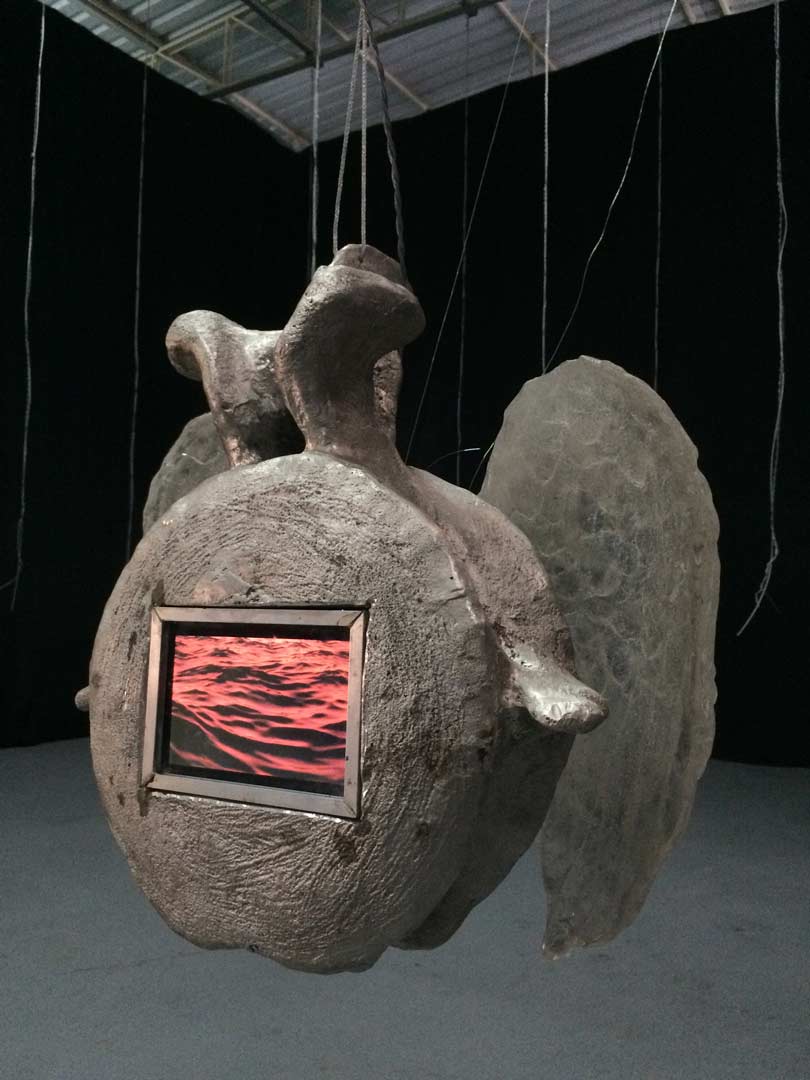 Essas provocações têm como ponto de partida a forma, o material, o espaço, a luz/sombra, ou seja, o impulso de linguagem é eminentemente plástico - e intrigante pelas associações de significados diversos que o artista constrói a partir de objetos híbridos. A instalação Jonas trabalha conceitos de território, de imersão, de inclusão e de afastamento. Faz referências à noção do sagrado como espaço protegido e espaço profano, sujeito às forças da natureza. Há proximidade, inclusive, com mitos de origem da cultura Tupinambá (Monan e o dilúvio).